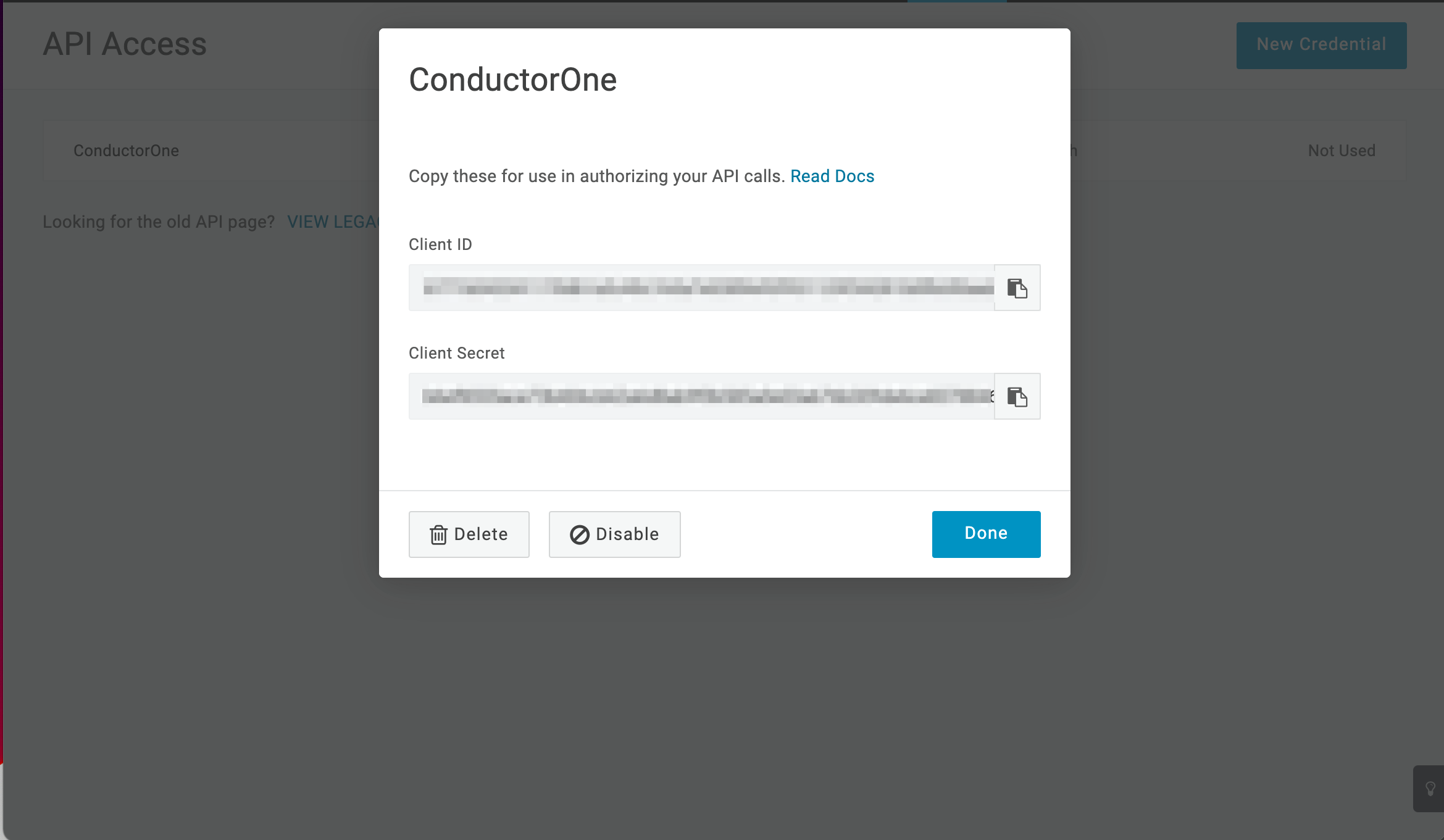 When the new API credential is created, copy and save the Client ID and Client Secret. We’ll use these in Step 3.